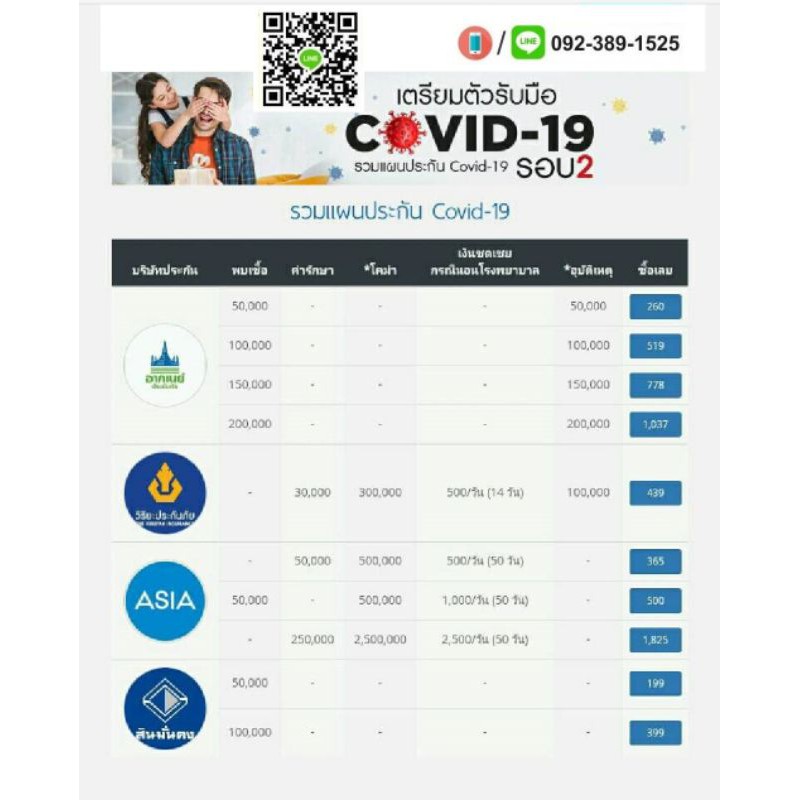 ภาคเอกชนร่วมใจทำ ประกันโควิด หรือ ไมโครอินชัวรันส์ ให้ลูกค้าฟรีๆ วงเงินคุ้มครองสูงสุด ครอบคลุมทั้งอุบัติเหตุ. ประกันภัยโควิด19 ซื้อได้ที่ เคาน์เตอร์เซอวิส ใช้เพียงบัตรประชาชน แพ็กเกจเริ่มต้นเพียง 117 บาท ต่อปี. ข้อควรรู้ ธนาคารเป็นเพียงนายหน้าประกันวินาศภัยผู้ชี้ช่องให้ทำประกันวินาศภัยเท่านั้น รับประกันวินาศภัยโดย บมจ.ทิพยประกันภัย บมจ.ธนาคาร. โซเชียลคาใจ หลังคนแห่ทำประกัน โควิด 19 เนื่องจากกลัวหากติดเชื้อ สงสัยถ้าทำประกันไว้กับหลายบริษัท จะได้เงินจากทุกที่หรือไม่ ? พี่ที่รู้จักคนหนึ่งแนะนำให้ทำประกันโควิด 9 ฉบับ 4000 กว่าบาท ติดปั๊บ รับ 850,000 1.สินทรัพย์ปกภ.เบี้ย 499 ตรวจเจอรับ 100,000 2.scb เบี้ย 520/ปี ตรวจเจอรับ 100,0